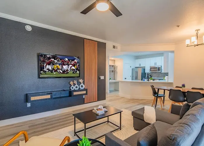 Relaxed 2Bd King Bed Pool, Hot Tub, Gym, Parking Appartement Glendale van 105 m² bevindt zich op 18 minuten wandelen vanaf Westgate Entertainment District en biedt draadloos internet.